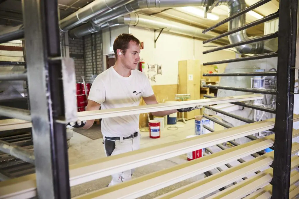 In onze machinale in Leeuwarden produceren we bewerkte houtproducten en plaatmaterialen, soms in kleine maar veel vaker in grote aantallen. Denk aan halffabricaten waarbij we naadloos aansluiten op het productieproces van onze klanten. Maar ook eenmalig maatwerk zoals een rond kozijn: we hebben alle kennis en kunde in huis. Natuurlijk kunnen we alles zagen, schaven en boren, maar CNC-frezen doen we ook. En uniek: Miedema Houtindustrie heeft een eigen uitgebreide spuiterij die perfect aansluit op andere bewerkingsafdelingen. Klanten kunnen hun producten dus in één keer gecoat geleverd krijgen, in eindeloze opties.